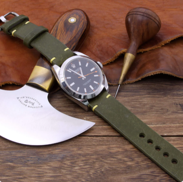 Leather Watch Strap, Minimalist on Rolex watch