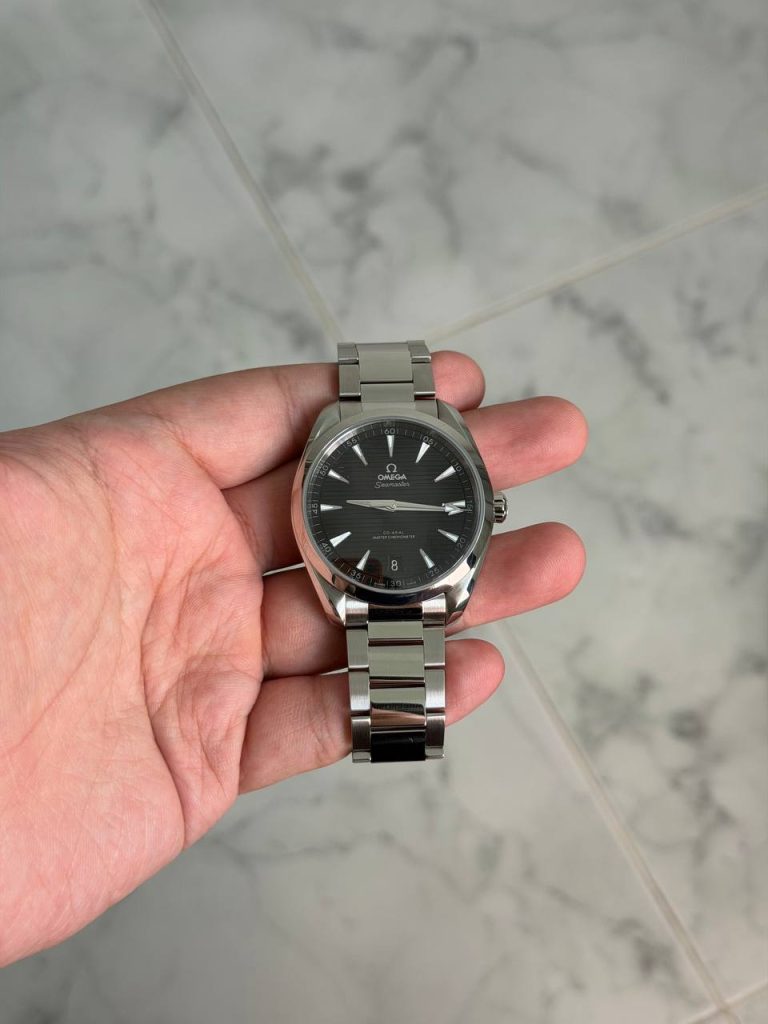 For sale is a Black dial Aqua Terra in 41mm. The Seamaster Aqua Terra is a superb tribute to OMEGA’s rich maritime heritage. In this 41mm model, the symmetrical case has been crafted from stainless steel, with a wave-edged design featured on the back. The black dial is distinguished by a horizontal “teak” pattern which is inspired by the wooden decks of luxury sailboats. There is also a date window at 6 o’clock and rhodium-plated hands and indexes filled with white Super-LumiNova. Presented on a polished and brushed bracelet, this certified chronometer is powered by the OMEGA Master Chronometer calibre 8900, certified at the industry’s highest standard by the Swiss Federal Institute of Metrology (METAS).