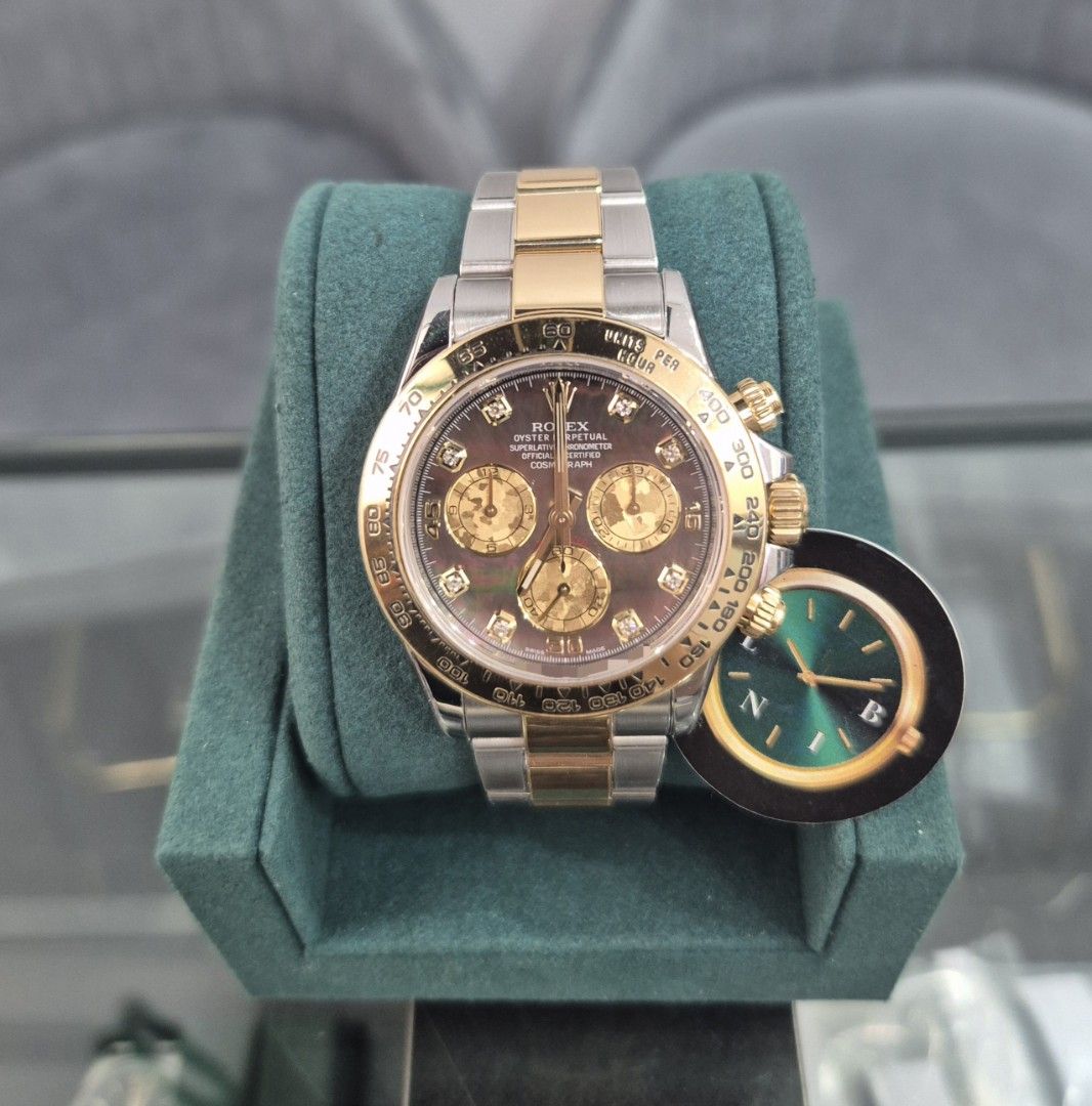 LNIB 2017 Rolex Daytona Half Gold Black MOP 8pt Diamond Watch Only w RSC Chit & Report – 116503