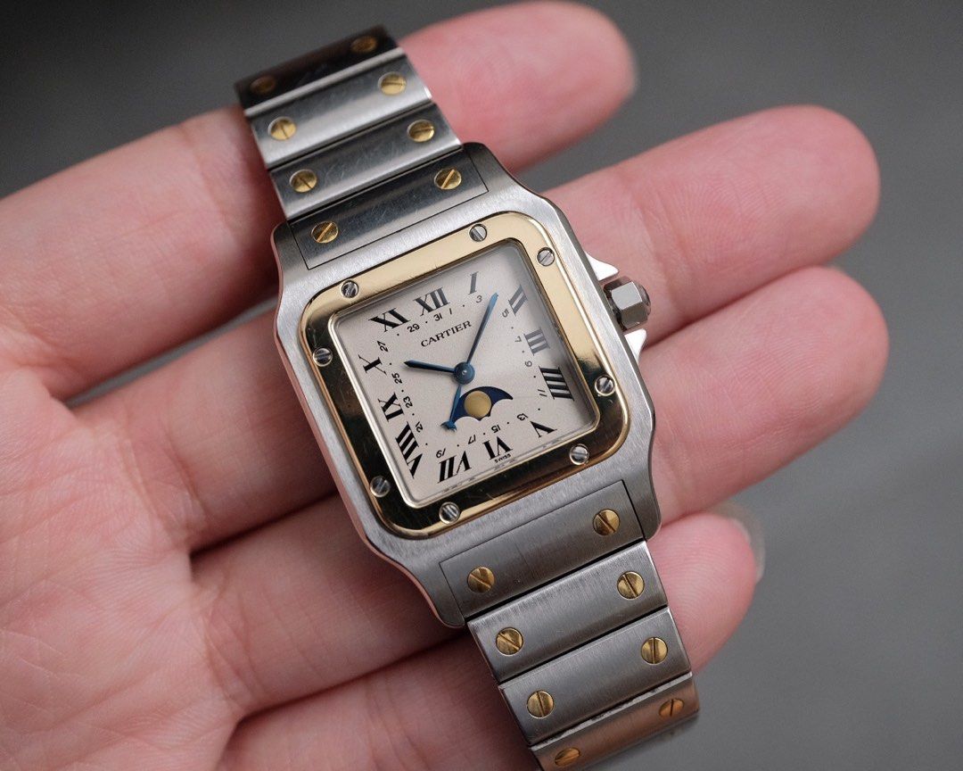 2025 Serviced! Cartier Santos Galbee Moonphase Ref. 119901 Two Tone Steel & Gold