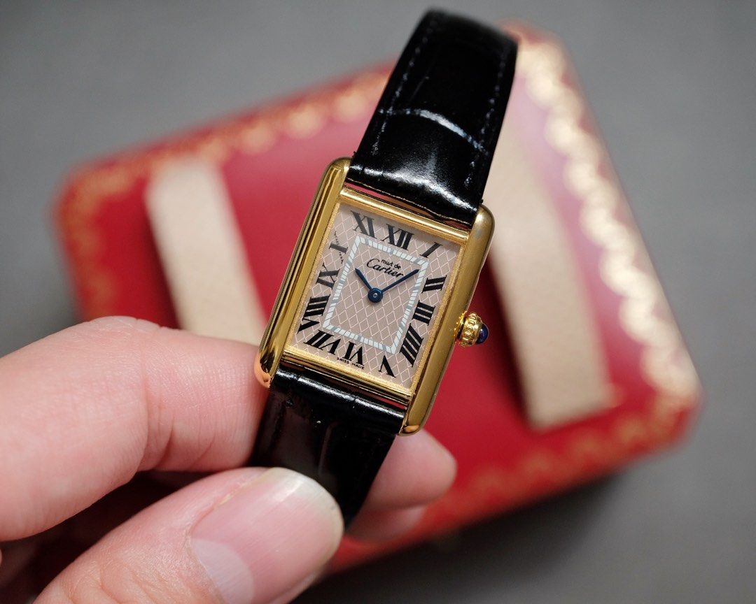 Celebration Dial & Rare Strap! Cartier Must de Cartier Tank Vermeil MM Pink Rhombus Pattern Dial Christmas Edition Ref. 2415 Quartz Movement Cal. 057